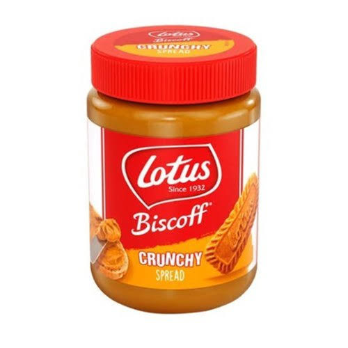 Lotus Biscoff Crunchy Spread is a spreadable version of the popular Biscoff cookies, made from caramelized Belgian biscuits. The spread is similar in texture to peanut butter, but with a distinct cookie flavor and crunchy bits throughout.
